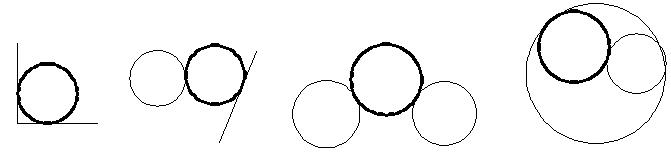 (3)切点、切点、半径(T):先指定两个相切对象,后给出半径画圆。图2-9给出了以“相切、相切、半径”方式绘制圆的各种情形(其中加黑的圆为最后绘制的圆)。