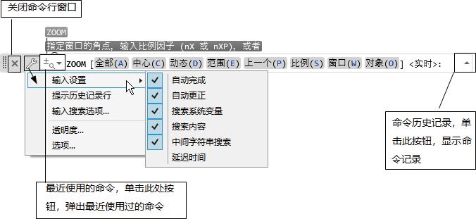 (2)可以拖动命令行窗口将其布置在屏幕上的其他位置,默认情况下布置在绘图区的下方。