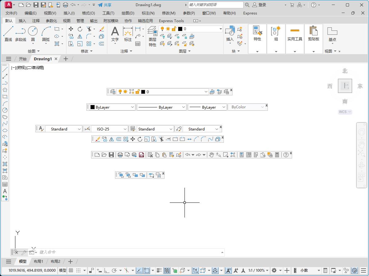 在绘图区中,十字光标的方向与当前用户坐标系的 X 轴、 Y 轴方向平行,系统预设长度为屏幕大小的5%。