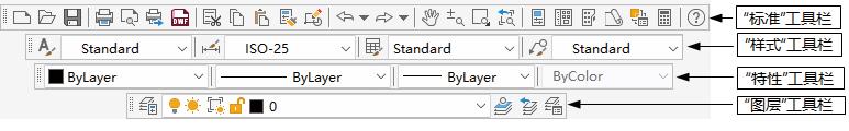 图1-10 “标准”“样式”“特性”“图层”工具栏
