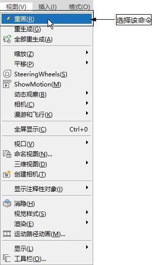 选择这种类型的命令将直接进行相应的绘图或其他操作。例如,选择“视图”菜单中的“重画”命令,如图1-9所示,系统将刷新显示所有视口。