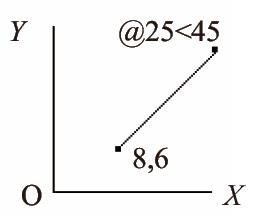 在相对坐标输入方式下,表示方式为“@长度<角度”,如“@25<45”,其中长度表示该点到前一点的距离,角度表示该点和前一点的连线与 X 轴正向的夹角,如图1-24(d)所示。