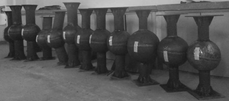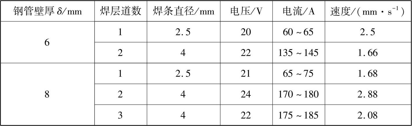 球-管对接焊接前,对钢管端部按照《空间网格结构技术规程》(JGJ 7—2010)规定的构造要求设置坡口,并根据焊接手册设置焊接参数,见表 2.2。试验中的所有焊缝均采用大西洋CHZ422 型焊条,焊接施工时,所有试件均由同一位专业焊工师傅按照规范以手工电弧焊在试验室内进行焊接,试件实物图如图2.4 所示。