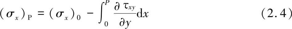 式中 ( σ x ) 0 ——边界点的已知应力值,对自由边界( σ x ) 0 取为 0,计算时用增量代替微分。