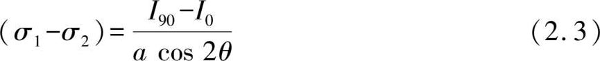 由于主应力方向未知,主应力方向角和主应力差值可分别由式(2.2)、式(2.3)确定。