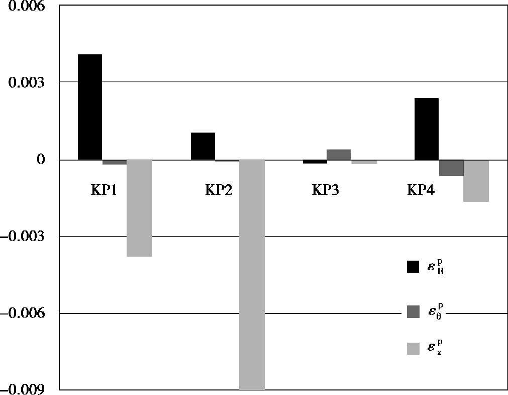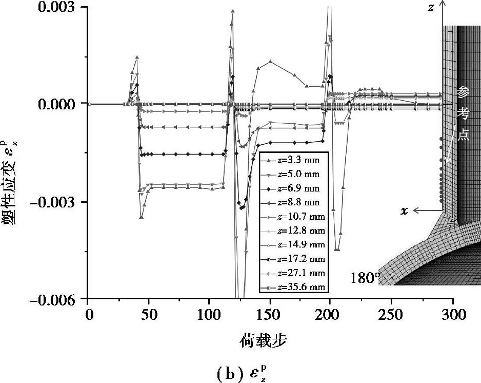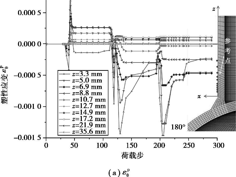 因整个焊接过程中关键点 2 不再处于热源中心环膨胀拉伸区域,而不再有环向应变为拉应变的过程。焊接冷却后参考点将留下最终的残余塑性应变,分别为
