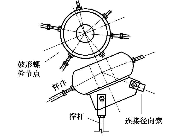 图1.7 鼓形螺栓节点弦支穹顶结构上部节点处理