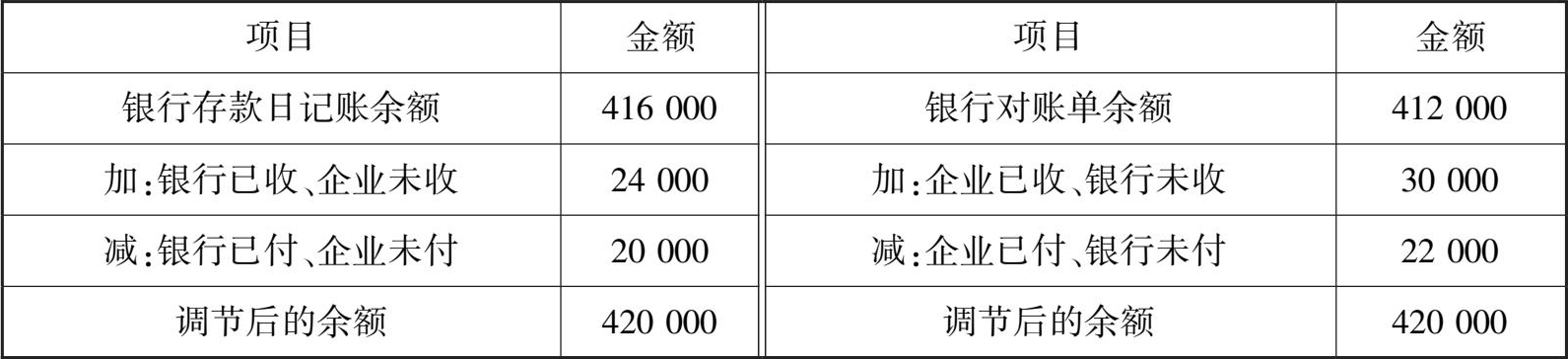 【例2-5】 甲企业出纳到其开户银行领取上月银行对账单,银行存款日记账余额为416000元,银行对账单余额为412000元,经逐笔核对,发现存在下列未达账项。