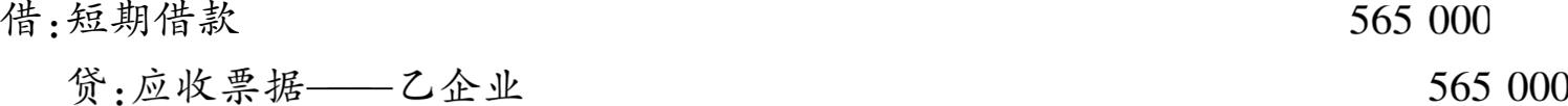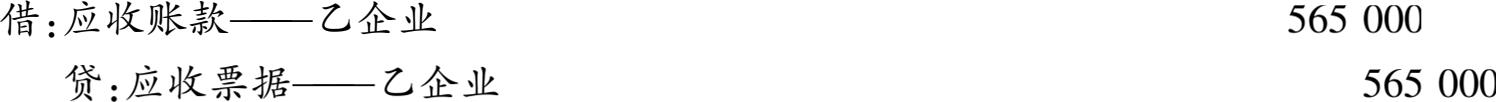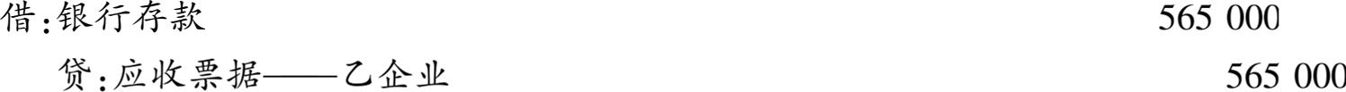 【例3-3】 沿用【例3-1】的资料,甲企业到期收回票面金额565000元,存入银行。甲企业账务处理如下: