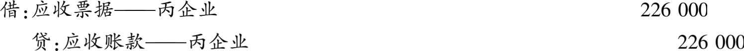 【例3-2】 9月15日,乙企业收到丙企业为抵付前欠购货款226000元寄来的一张期限为3个月的银行承兑汇票。乙企业账务处理如下:
