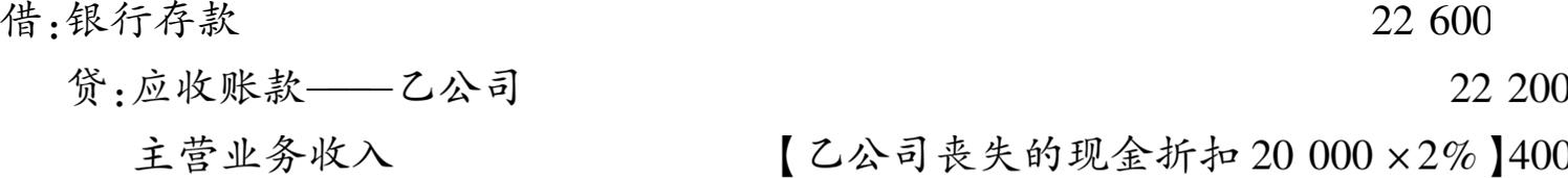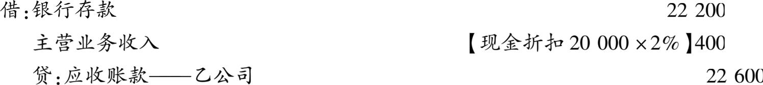 现金折扣=20000×2%=400(元)