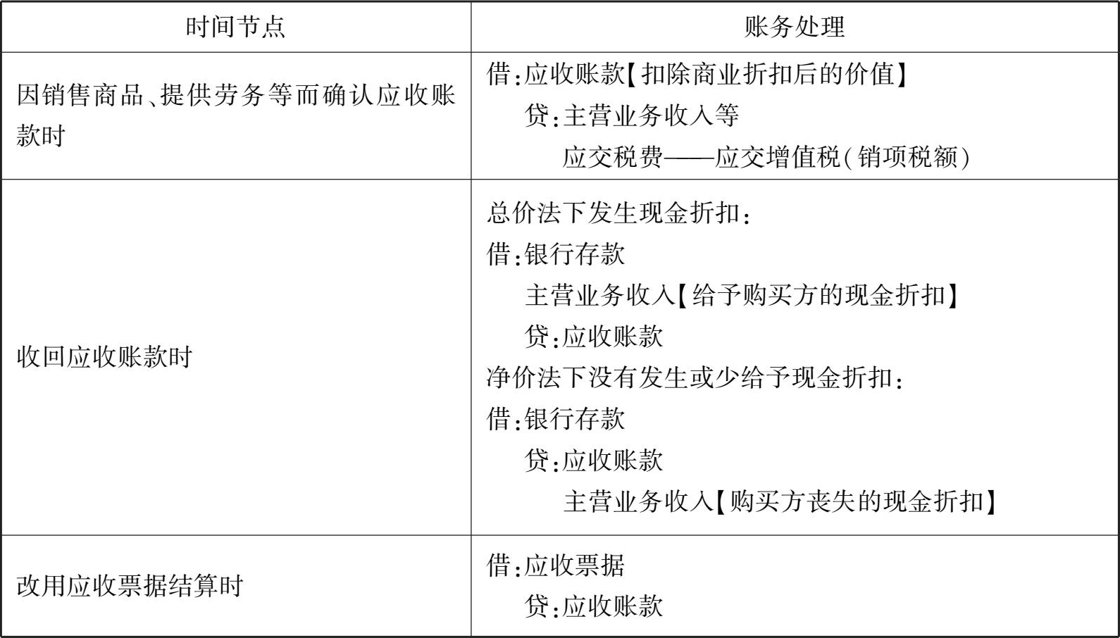 表3-2 应收账款的账务处理