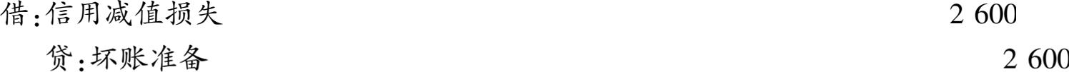假设甲企业计提本年坏账准备前,12月31日“坏账准备”科目已有贷方余额5000元,则应计入当期信用减值损失的金额为2600元(7600-5000)。其账务处理如下: