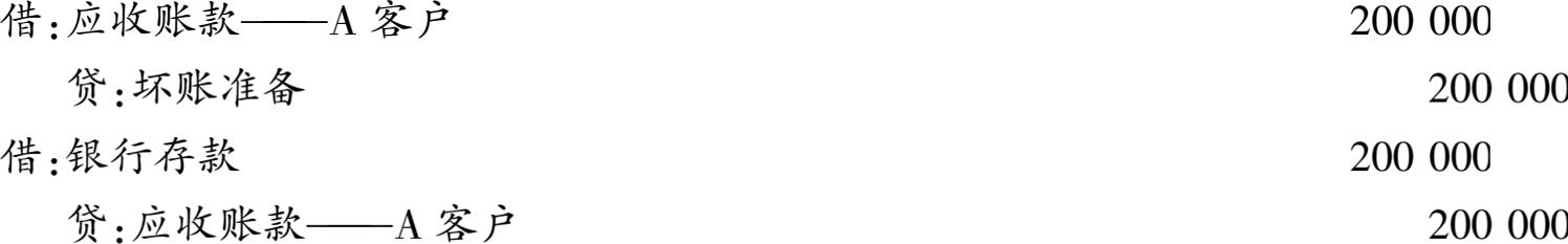 【例3-13】 12月31日,甲企业应收丙企业的账款余额为2000000元,甲企业根据企业会计准则确定应计提坏账准备的金额为200000元。甲企业的账务处理如下: