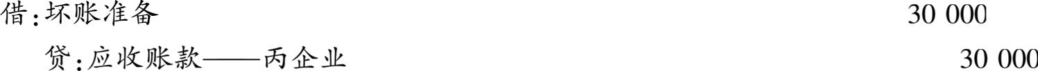 【例3-14】 5月31日,甲企业应收丙企业的货款实际发生坏账损失30000元。甲企业的账务处理如下: