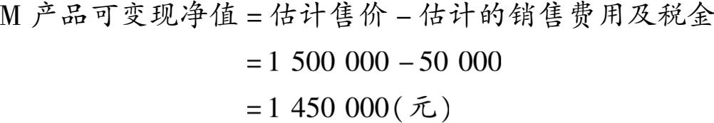 【例4-23】 12月31日,甲企业B材料的账面成本为900000元,B材料的估计售价为800000元;B材料用于生产M产品,假设用B材料900000元生产M产品的成本为1200000元,M产品的估计售价为1500000元,估计的销售费用及税金为50000元。甲企业采用成本与可变现净值孰低法进行期末计价。