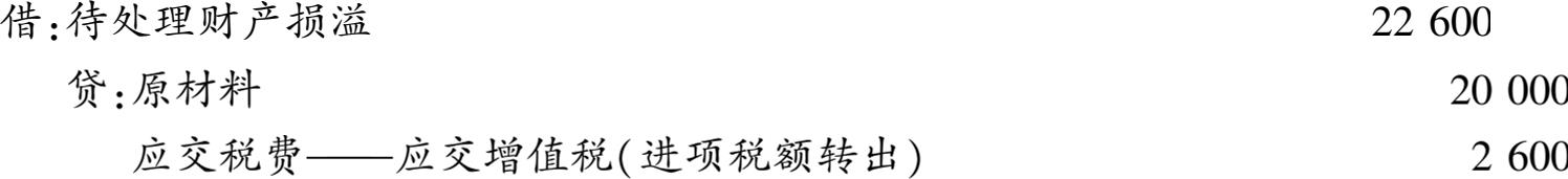 【例4-20】 甲企业在财产清查中发现毁损A材料200千克,实际成本为20000元,相关增值税专用发票上注明的增值税税额为2600元。经查属于材料保管员的过失造成的,按规定由其个人赔偿15000元。甲企业的账务处理如下:
