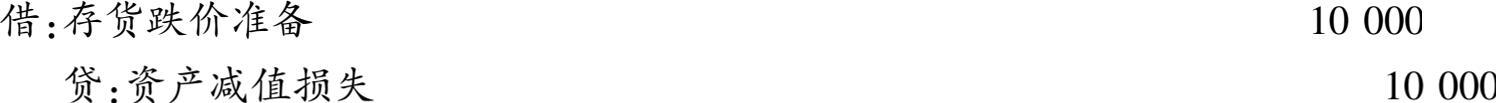 【例4-27】 6月30日,A商品的账面成本为120000元,已计提存货跌价准备金额为20000元。由于市场价格有所上升,使得A商品的预计可变现净值为110000元,应转回的存货跌价准备为10000元[(120000-110000)-20000]。甲企业的账务处理如下: