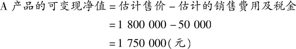 【例4-22】 12月31日,甲企业A产品的账面成本为2000000元。据市场调查,A产品市场销售价格为1800000元,估计的销售费用及相关税金为50000元。企业没有签订有关A产品的销售合同,甲企业采用成本与可变现净值孰低法进行期末计价核算。甲企业A产品的可变现净值计算如下: