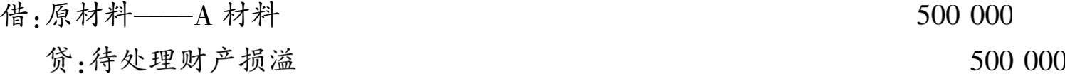 【例4-19】 甲企业在财产清查中盘盈A材料5000千克,实际单位成本100元,经查属于材料收发计量方面的错误。甲企业的账务处理如下: