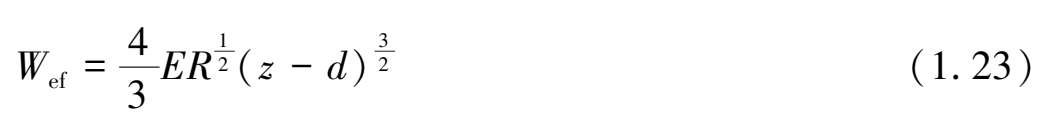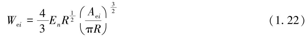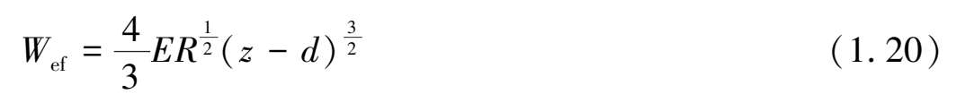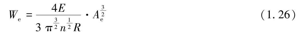 若单位面积上有 n 个微凸体,则粗糙表面所支承的均匀分布的总载荷为 nW i ,这里 W i 为每个微凸体上所承受的载荷,如图 1.13 所示。根据赫兹分析,若以法向变形量 δ 来表示,则每个微凸体压痕的弹性接触半径 a 为: