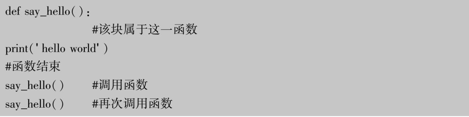 它是如何工作的?定义名为say_hello的函数,这个函数不使用参数﹐因此在括号中没有声明变量。函数的参数只是输入函数之中﹐以便传递不同的值给它﹐并获得相应的结果。要注意到可以两次调用相同的函数﹐不必重新把代码再写一次。