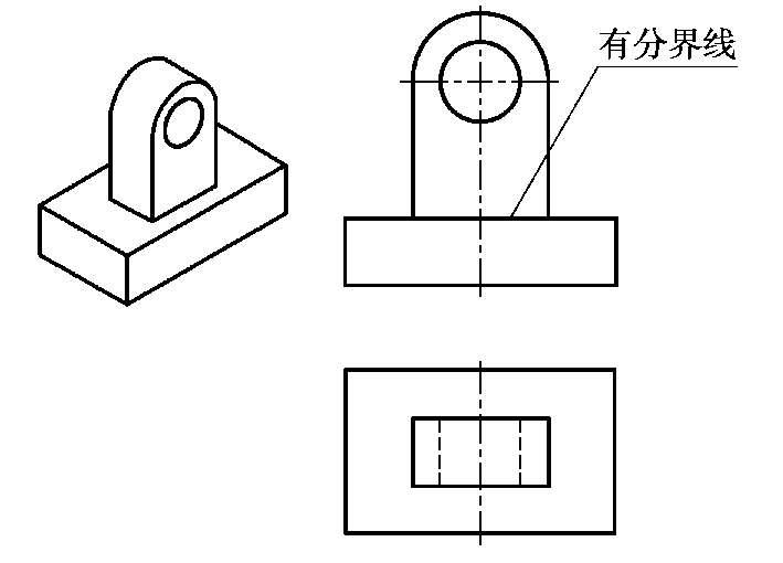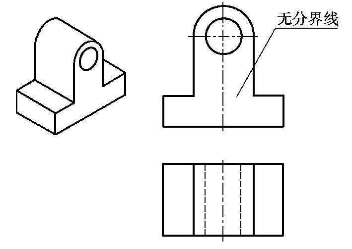 两形体的表面连接时,如果互相平齐连成一个平面,则连接处无分界线,如图 4.4 所示。当两表面不平齐时,它们之间应该有线隔开,如图 4.5 所示。