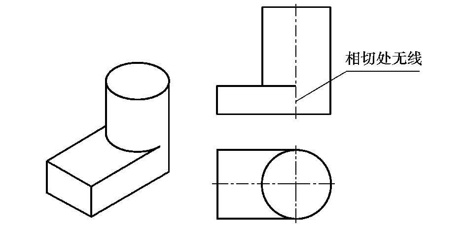 两形体的表面相切时,其相切处是圆滑过渡,无分界线,在视图上相切处一般不画分界线,如图 4.6 所示。