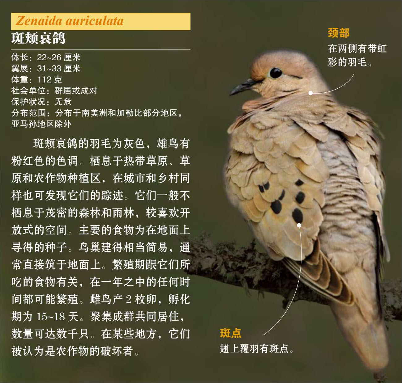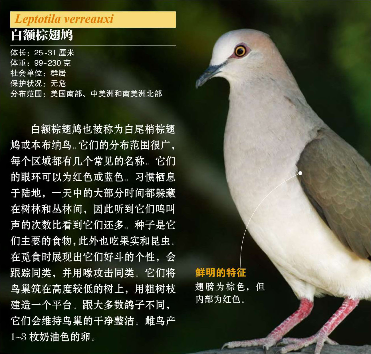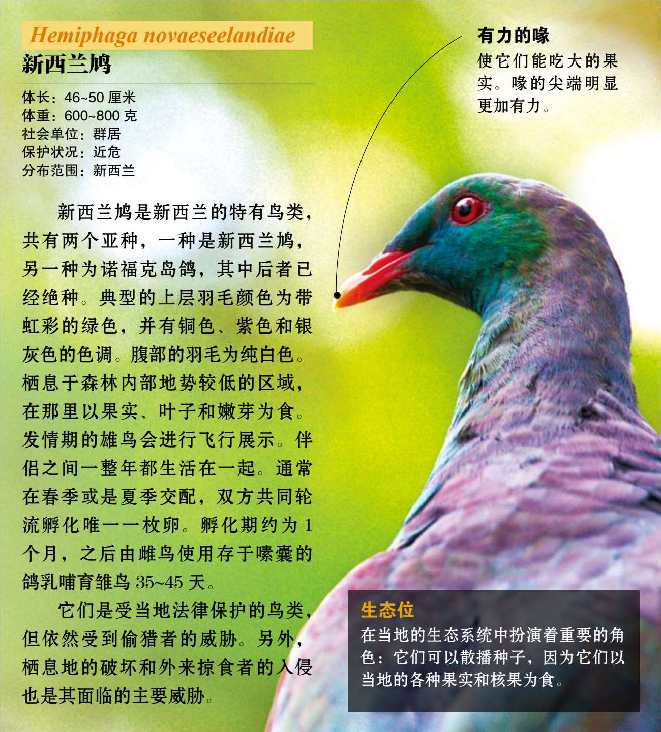 鸽子的体形健壮结实,头形较小,腿短且有鳞片。喙能让它们吸水时无须抬头。通常,它们的眼睛周围被裸露的皮肤包围。除了南极洲之外,它们栖息于世界各地的温带和热带地区,习惯栖居于陆地和树上,并且拥有利于飞行的肌肉。