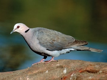 红眼斑鸠的眼睛周围的皮肤裸露,呈红色,因此而得名红眼斑鸠。全身羽毛为褐色,腹部和脸部的羽毛略呈微红色调,脖子两侧的羽毛呈黑色。