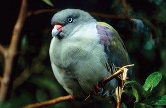 绿皇鸠名称的命名源自于其翅膀、背部和尾巴的金属绿色的羽毛,跟头部、胸部和腹部的灰色羽毛形成鲜明的对比。背颈部区域的羽毛为红色。树栖性,栖息于热带丛林和红树林。它们在树林中觅食,主要的食物为果实、核果和浆果。将鸟巢简单地筑于较低的树上,雌鸟只产1枚白色卵,孵化时间为18天。它们不是很合群,但有可能会组成小群体。有时候可以看到它们跟民岛犀鸟( Penelopides mindorensis )聚集在一起。