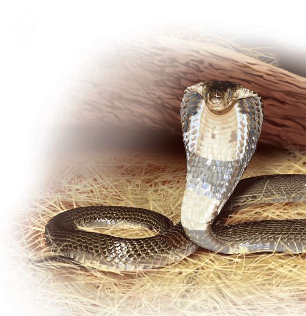 ■埃及眼镜蛇,分布在非洲北部海岸。古埃及人相信这种蛇会喷火。法老用这种蛇作为自己皇冠上的保护标志。