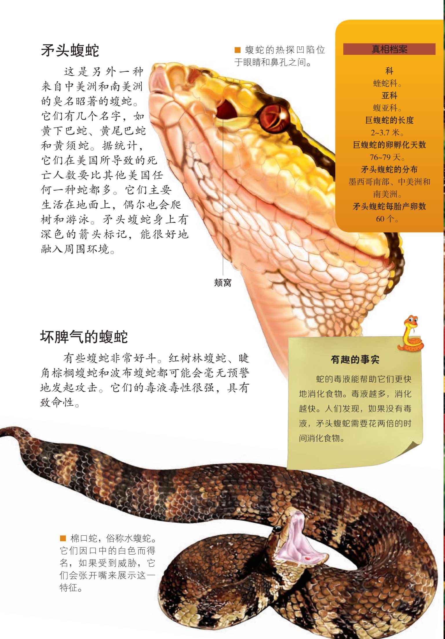 蝮蛇是一种新大陆毒蛇。像旧大陆毒蛇一样,它们也有长长的尖牙。但正是它们头上的凹陷,或者说热探测器官,使得蝮蛇真正与众不同。大多数蝮蛇都有剧毒,受到打扰时会发起攻击。