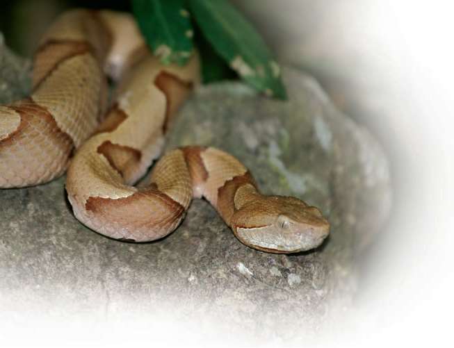 铜头蝮蛇是美国危害最小的毒蛇之一,它们的攻击性不强,毒液的毒性也很弱。铜头蝮蛇的外表很吸引人。它们有几种颜色,如棕色、粉色、橙色或黄色。蛇嘴附近还有一条亮黄色或橙色的线。