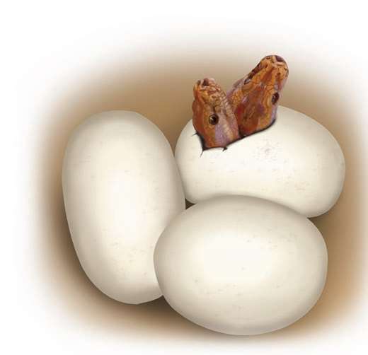 蛇卵柔软、坚韧而粗糙。蛇卵的外壳不像鸟卵那么硬。小蛇需要花些时间才能从卵壳中挣脱出来。蛇会把卵产在潮湿而温暖的地方,并试图将蛇卵隐藏起来,以躲避食肉动物。