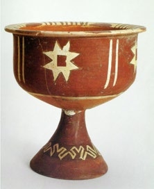 ▲八角星纹彩陶豆·大汶口文化遗址出土