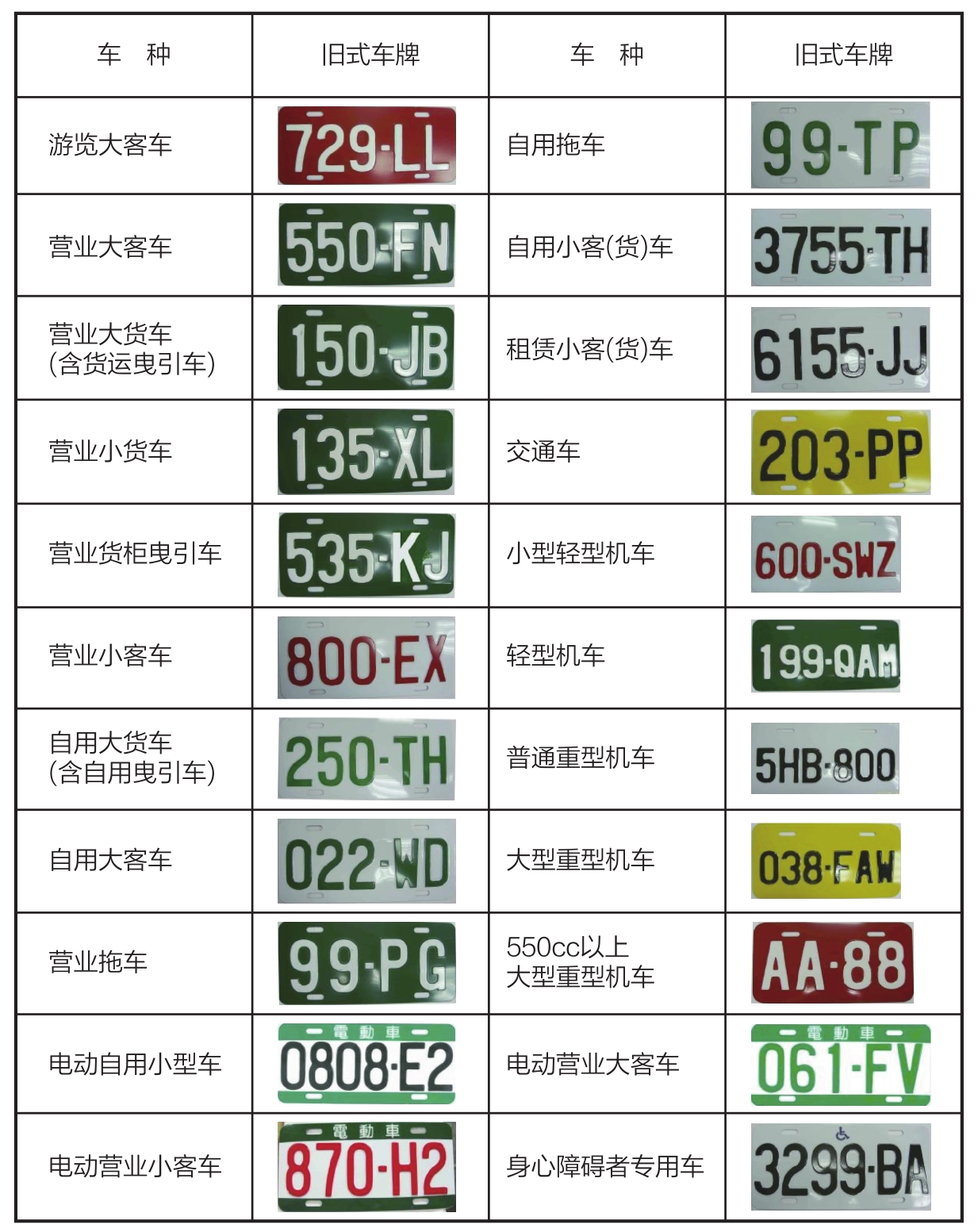 图2-84 台湾在用第七代(旧式)车牌示意图(表格截图)