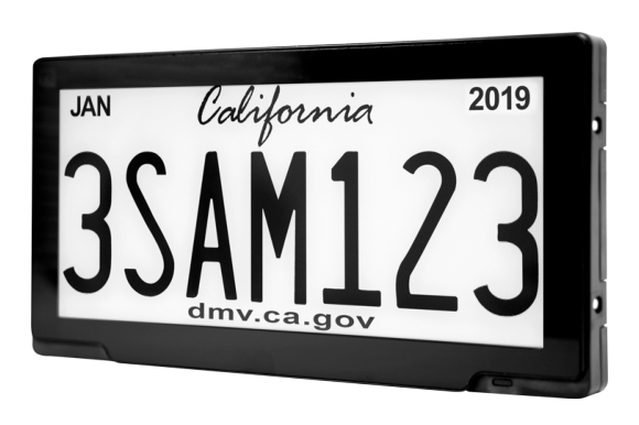 随着信息技术的发展,2018年6月,加利福尼亚州萨克拉门托市启动电子显示车牌试点计划,试点发行由电池供电的电子显示车牌,如图3-6所示。电子显示车牌显示的信息可以更新,车牌本身还配备一个可追踪的装置,以防止汽车被盗;除提供有关车辆及其所有者的信息外,还可以提供自动付款、遥测和有关车辆状况的信息。当然,这种新车牌需要额外收取费用(基础版499美元,高级版799美元)。目前,这种电子显示车牌只在美国被允许使用,准确地说是在加利福尼亚州和亚利桑那州。两州道路上有大约15000辆带有这种车牌的车辆。