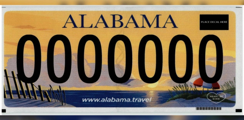 图3-11 2022年亚拉巴马州标准车牌式样,描绘了田园风光——金色天空背景下的河流和绿色山丘