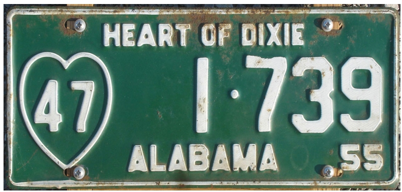 图3-7 1955年亚拉巴马州“迪克西之心”车牌