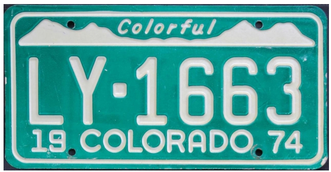 科罗拉多州从1913年开始实施车辆登记悬挂车牌制度。1950—1955年,该州首次在车牌上使用宣传语“多彩科罗拉多”;1958—1959年再次使用该宣传语,中间再有间断,1973—1974年又一次使用。自1950年之后的25年间,该州车牌主要以绿色和白色为主色调,在美国各州车牌中并不多见。