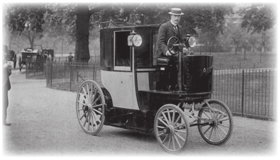 那时出租车只有马车和“蜂鸟”电动汽车,1897年的“蜂鸟”电动汽车如图1-3所示。