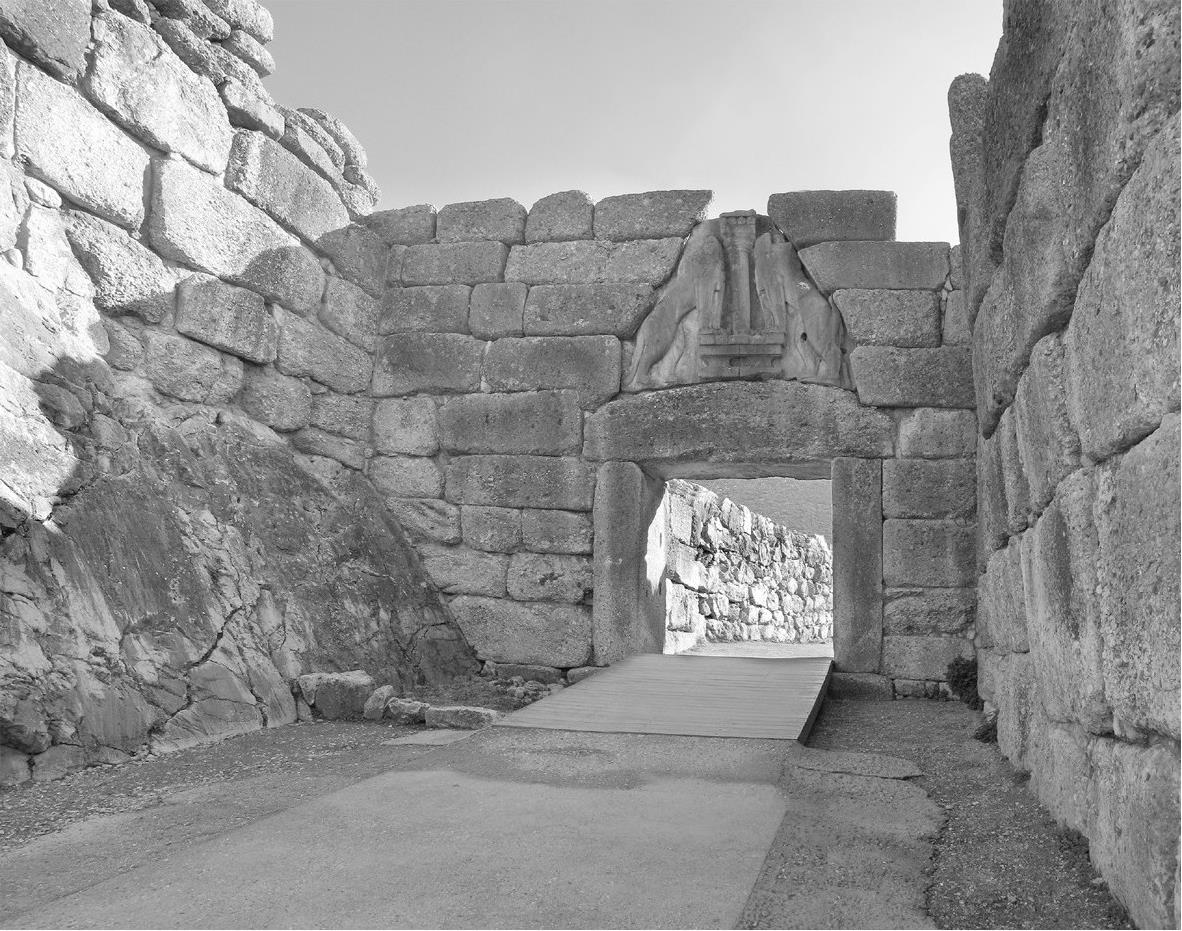 图2-7 迈锡尼《狮子门》(约公元前1400—前1300),石浮雕。
