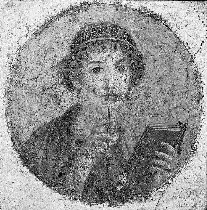 图3-29 《持笔的少女》(1世纪),湿壁画。