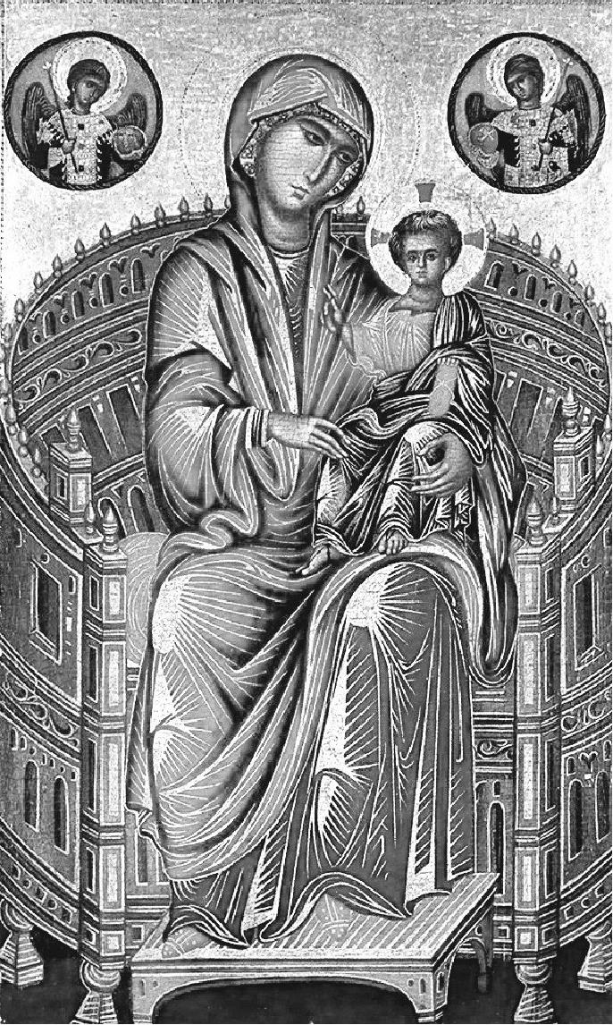 图4-13 《宝座上的圣母》(13世纪晚期),板上蛋彩画。
