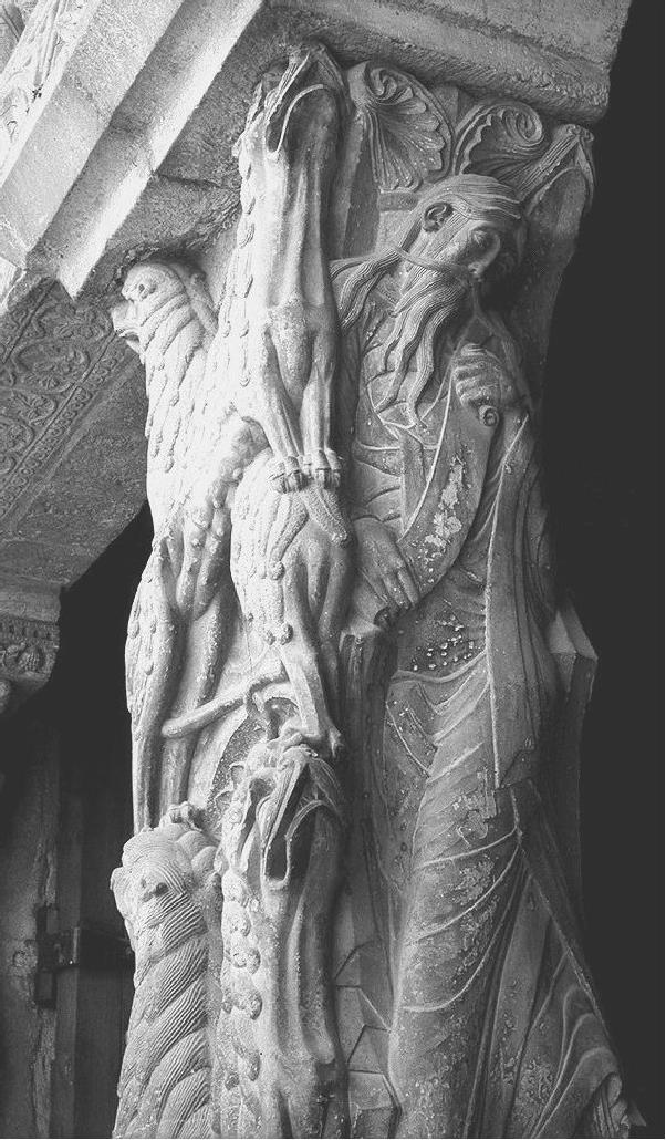 图4-18 吉斯尔伯特斯《逃往埃及》(约1130),柱头雕像。