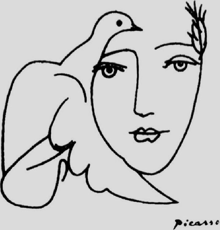 图1-10 毕加索《和平的脸容》,素描。