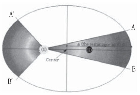接着,开普勒又打破了第二个神圣的审美标准:行星都做匀速运动。开普勒证实,行星在椭圆轨道上,有时离太阳远,有时离太阳近,离太阳远时行星运动得比较慢,离太阳近时则运动得较快。神圣的“匀速”圆周运动也被彻底打碎了。不过还有一点聊以自慰的是,行星沿椭圆轨道上的运动还是遵循一种规律,它们并不是信马由缰地乱蹦乱窜。这个规律就是开普勒第二定律:由行星到太阳之间连一条线(学名叫“矢径”),这条线在相同的时间内扫过的面积相等。啊,“均匀性”这一美学标准总算以另一种面貌展现在人们面前!