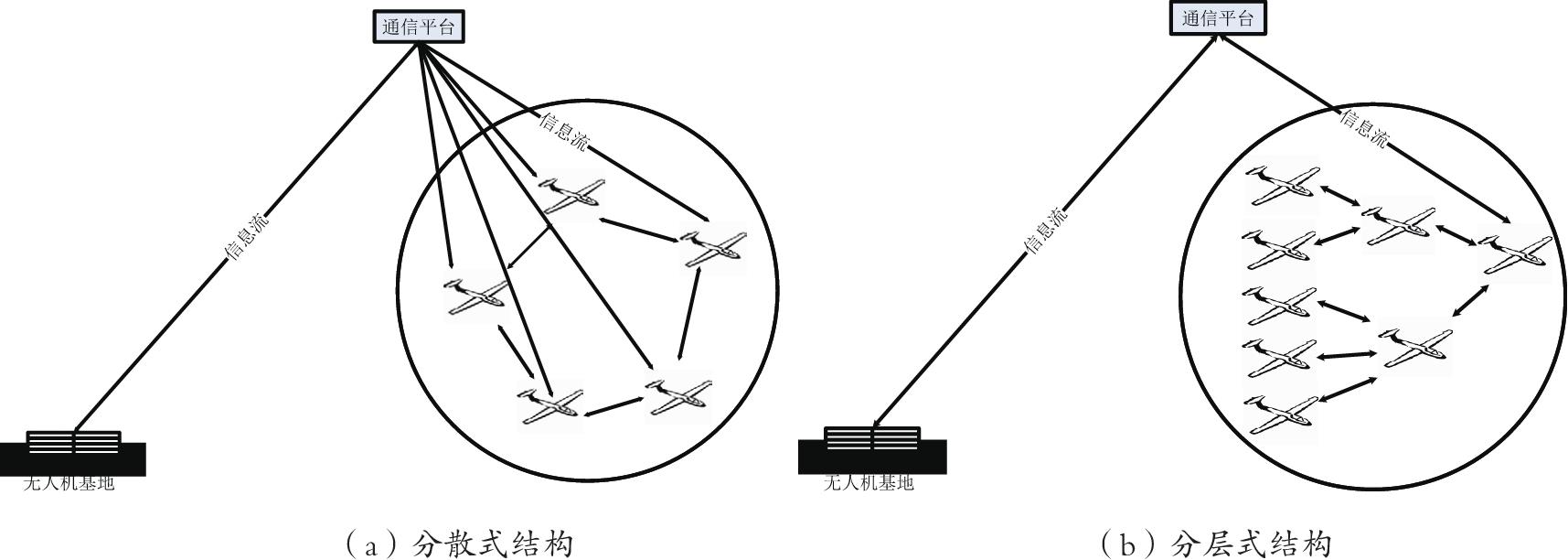 协同控制结构是指为了实现预定的目标而把无人机个体联系到一起,主要是研究如何组织和控制无人机个体来实现整个无人机系统所需实现的功能。因此,针对不同的协同作战任务,协同控制结构也是需要调整的。它的选择受到诸多因素的影响,例如,无人机本身、任务性质以及作战环境等,因此应当综合分析这些因素,确定系统的规模及无人机个体间的关系,从而选择合适的结构,充分发挥其优势。