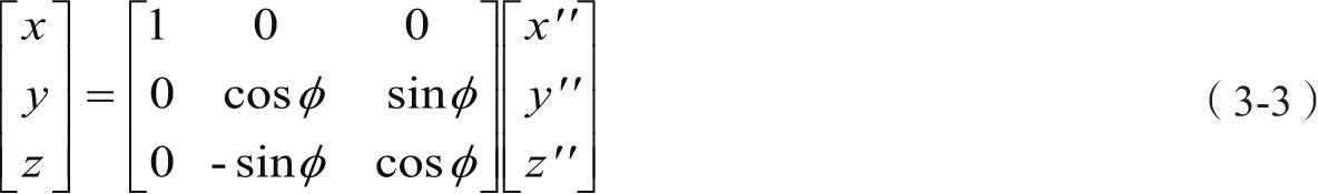 由过渡坐标轴系S″转动滚转角Φ到机体坐标轴系S b –O b X b Y b Z b ,即式(3-3)。